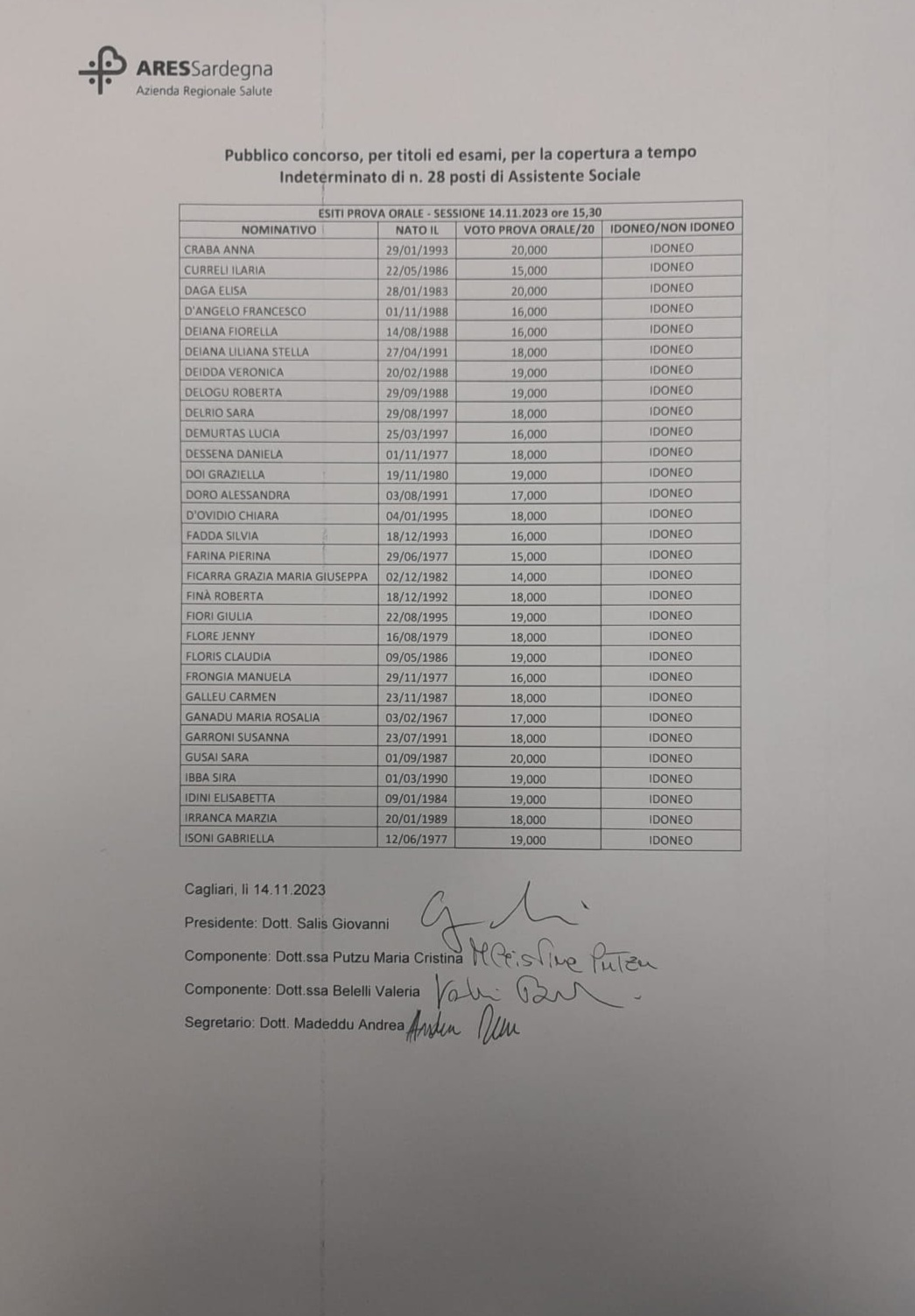 ATTENZIONE: Esiti prova orale - sessione del 16/11/2023 mattino