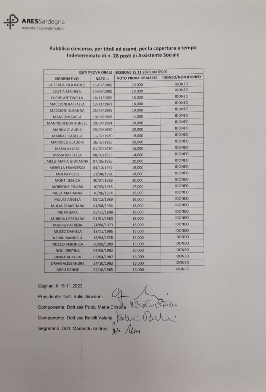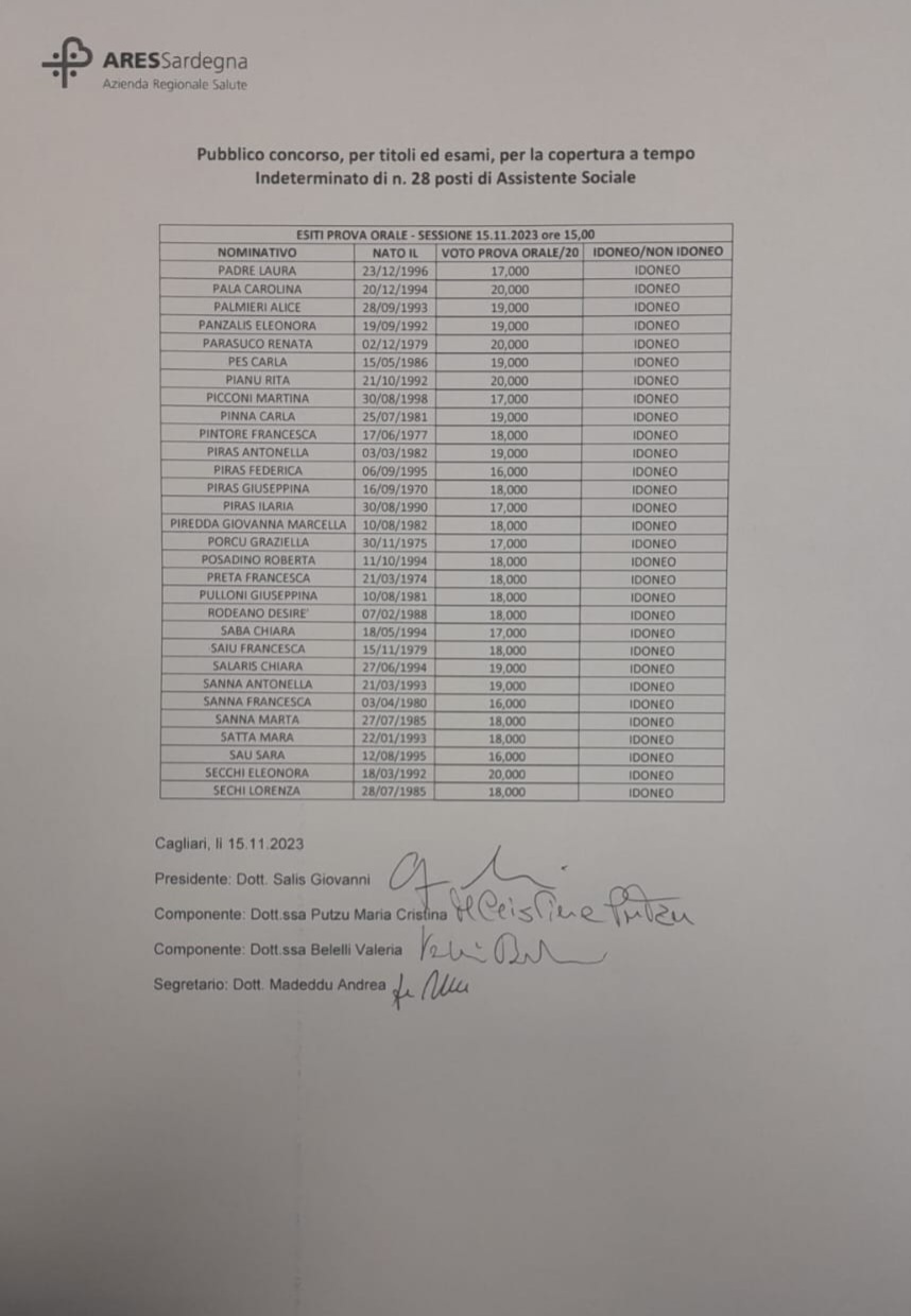 ATTENZIONE: Esiti prova orale - sessione del 15/11/2023 mattino