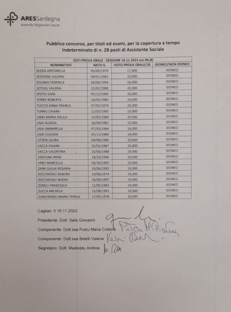 INFORMATIVA: parziale rettifica allegato A graduatoria di merito approvato con Determinazione ARES n. 3479 del 12/12/2023