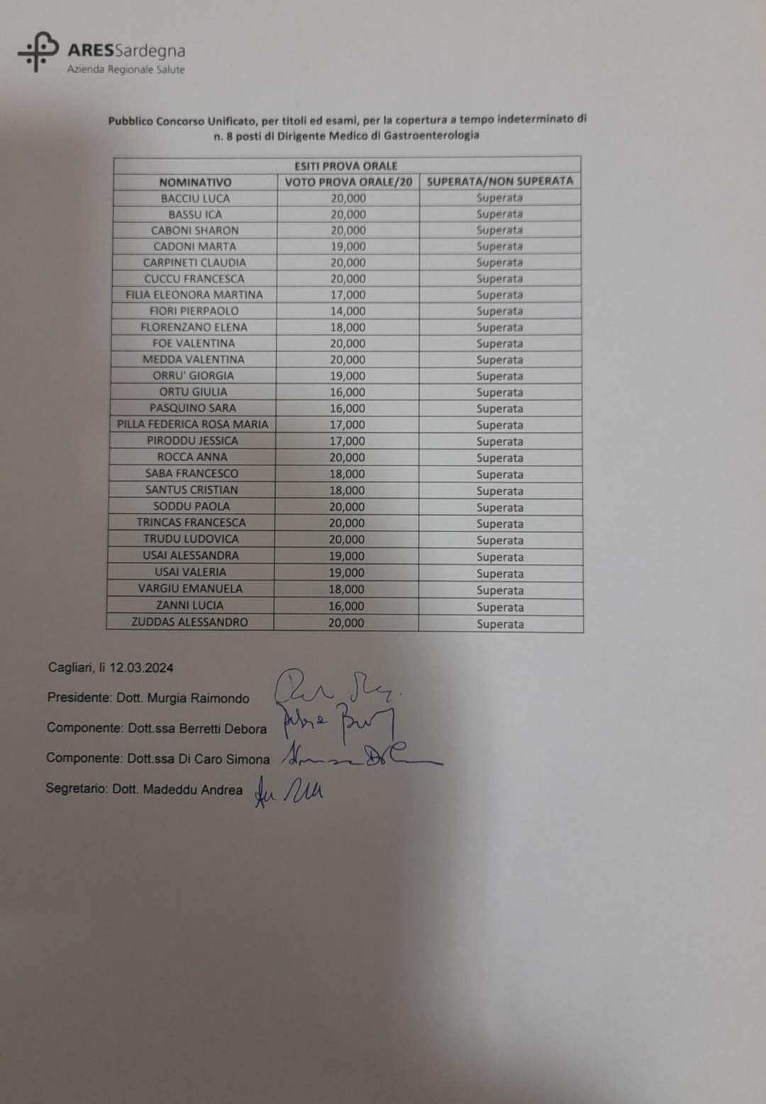 Pubblico Concorso Unificato, per titoli ed esami, per la copertura a tempo indeterminato di n. 8 posti di Dirigente Medico, disciplina Gastroenterologia, da destinare alle Aziende del Servizio Sanitario Regionale, indetto con Determinazione Dirigenziale ARES Sardegna n. 2447 del 29/08/2023; Pubblicazione della Gazzetta Ufficiale n. 68 del 08/09/2023