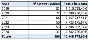 In attuazione degli obblighi di trasparenza e di monitoraggio previsti dalla normativa vigente in materia di sicurezza delle cure e gestione del rischio sanitario, si pubblicano pertanto, nella tabella sottostante, i dati relativi ai risarcimenti erogati.